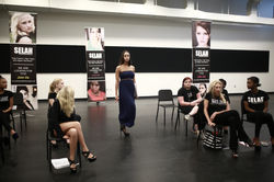 ![]() Selah Model Coach Tiara S. Crawford prepping model for Dillard's 2014 Prom Fsshion Show |